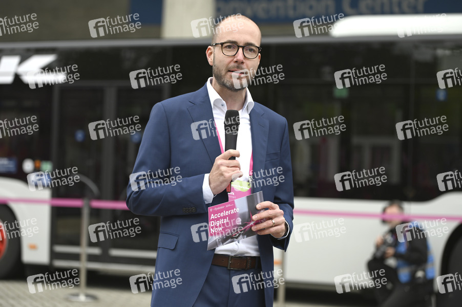 Dirk Reinert beim Stand der Telekom bei der Presse Highlight Tour auf der Hannover Messe 2022 auf dem Messegelände. Hannover, 29.05.2022