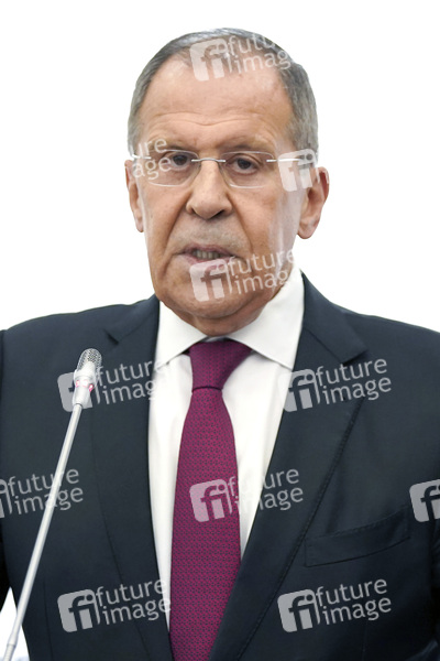 Sergei Wiktorowitsch Lawrow / Sergey Lavrov bei einer Pressekonferenz zur Eröffnung vom 18. Petersburger Dialog 2019 im Steigenberger Hotel. Königswinter, 18.07.2019