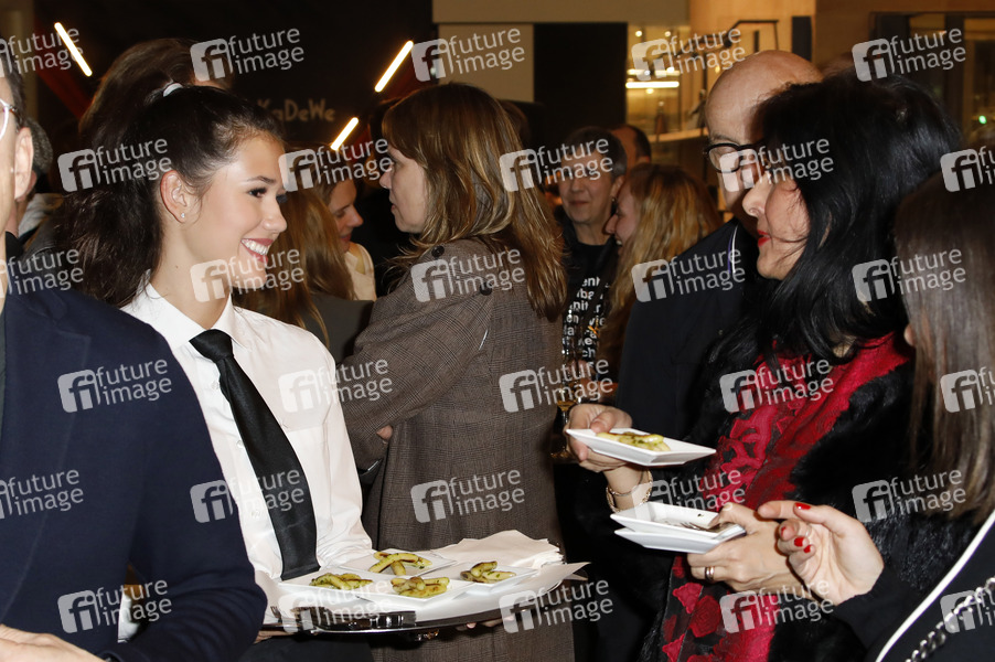 Kellnerin Isabella Maria Ahrens, Tochter von Mariella Ahrens, bei der Eröffnung des ersten temporären AlphaTauri 3D-Knit Labs im KaDeWe. Berlin, 03.04.2019