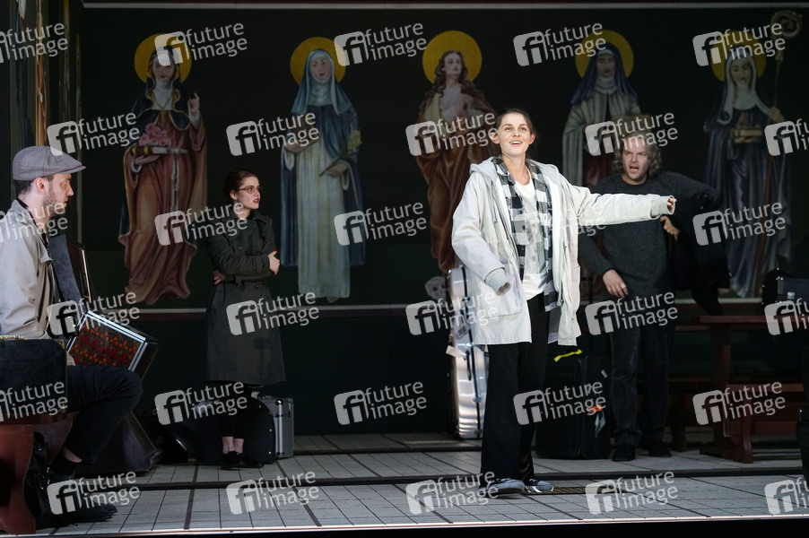 Marcel Kohler, Linn Reusse, Lorena Handschin und Felix Goeser bei der Fotoprobe des Theaterstücks 'Zdeněk Adamec' im Deutschen Theater. Berlin, 19.10.2020