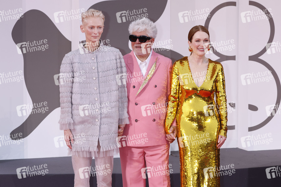 Tilda Swinton, Pedro Almodovar und Julianne Moore bei der Premiere des Kinofilms 'The Room Next Door' auf der Biennale di Venezia 2024 / 81. Internationale Filmfestspiele von Venedig im Palazzo del Cinema. Venedig, 02.09.2024