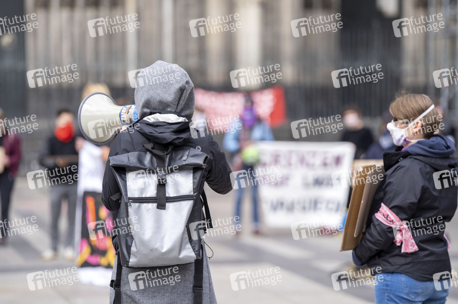 Demonstranten bei 1. Mai-Demonstration auf dem Roncalliplatz . Köln, 01.05.2020