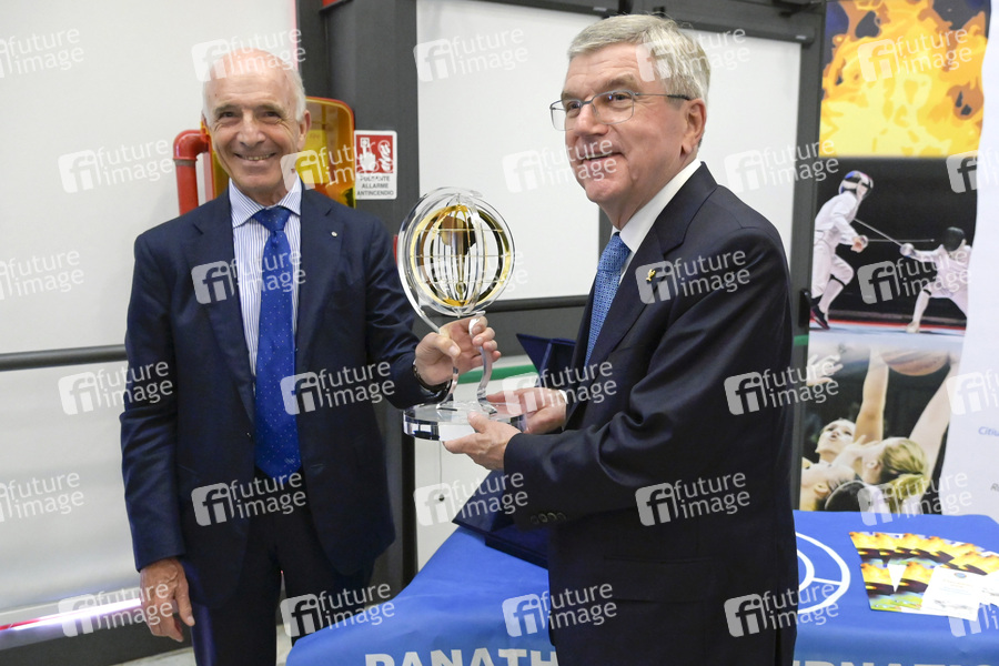 Pierre Zappelli überreicht Thomas Bach den Flambeau d'Or Award 2022 des Sportverbands Panathlon International im CONI Center. Rom, 16.09.2022