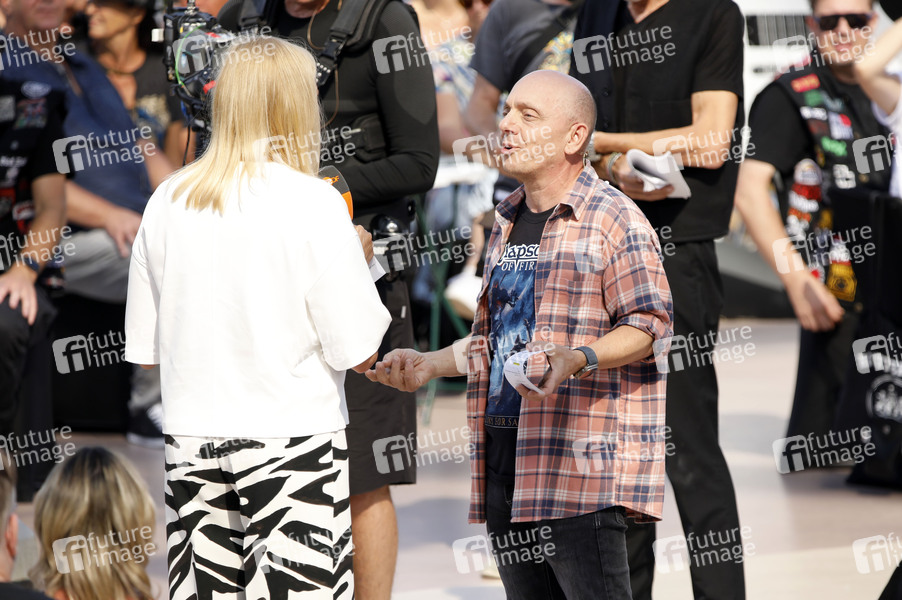 Andrea Kiewel und Bernhard Hoecker in der TV Show 'ZDF-Fernsehgarten - Rock im Garten' auf dem Mainzer Lerchenberg. Mainz, 07.09.2025