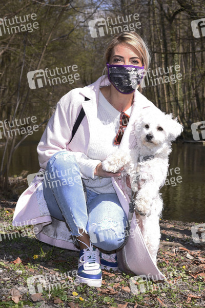 Moderatorin, Entertainment, Prominenz, Celebrities, Celebrity, Fotoshooting, Photoshooting, Tier, Hund ausführen, Gassigehen, Gassi gehen, Coronakrise, Corona-Krise, Corona, Covid-19, Coronavirus, Coronaviren, Corona-Virus, Corona-Viren, Ausgangasbeschränkung, Ausgangsbeschränkungen, Coronamaßnahmen, Ansteckungsgefahr, Abstandhalten, Abstandsregel, Abstandsregeln, Vorbeugung, Prävention, Ausnahmezustand, Corona-Schutz, Maßnahmen, Coronamaßnahmen, Corona-Regeln, Corona-Maßnahmen, ausbleibende Kunden, geschlossene Geschäfte, Atemschutz, Atemschutzmaske, Virenschutz, Schutzmaske, Mundschutz, Mund-Schutz, Mund-Nase-Schutz, Mund-Nasen-Schutz, MNS