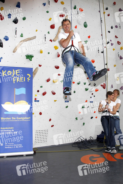 Jörg Pilawa wirbt für 'Koje frei' im Klettergarten der Nordwandhalle, Hamburg