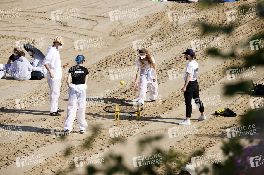 Klimaaktivisten besetzen A100-Baustelle. Aktivisten des Bündnisses Robin Wood demonstrieren mit der Aktion zusammen mit Aktivisten der Organisationen Ende Gelände, Fridays for Future und Sand im Getriebe gegen den geplanten Ausbau der Autobahn. Berlin, 05.06.2021