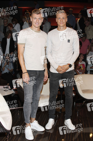 Toni Kroos und Felix Kroos bei der Aufzeichnung der ZDF-Talkshow 'Markus Lanz' im Fernsehmacher Studio auf dem Phoenixhof. Hamburg, 27.06.2019