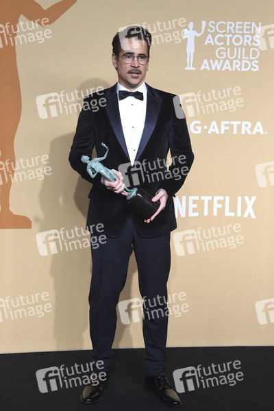Colin Farrell mit dem Preis für den besten Hauptdarsteller in der Mini-Serie 'The Penguin' beim Preisträger-Photocall der 31. Screen Actors Guild Awards 2025 im Shrine Auditorium and Expo Hall. Los Angeles, 23.02.2025