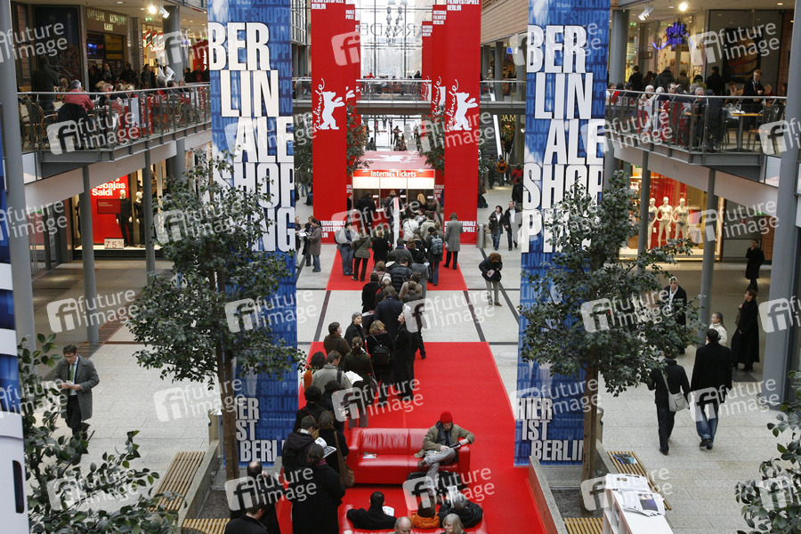 Film Fans, Kinobesucher, Berlinale Besucher, Berlinale Banner, Fahnen, Potsdamer Platz Arkaden