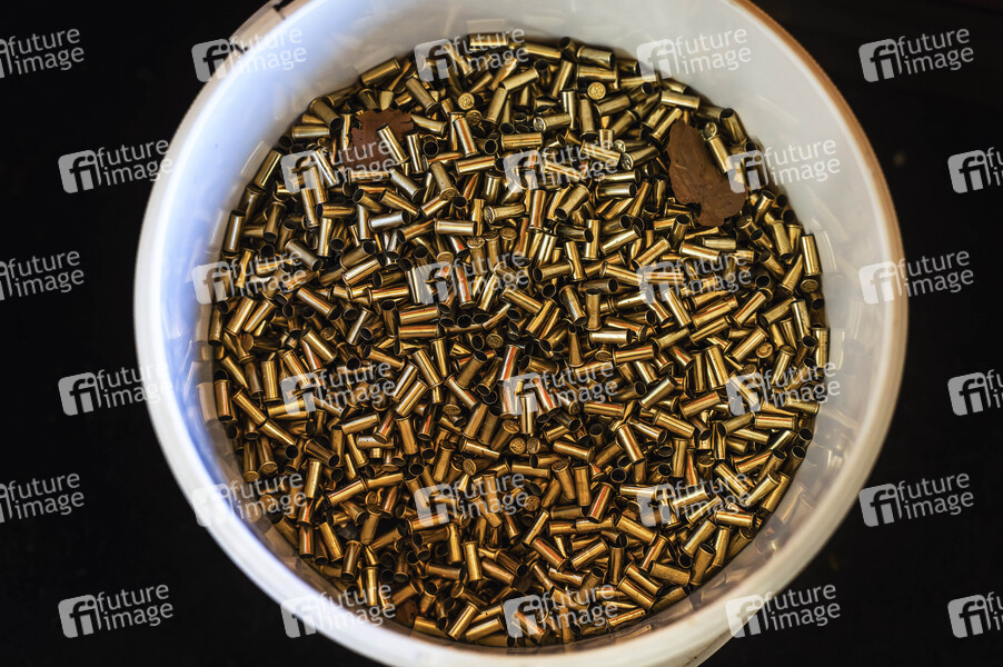 Sportschießen bedeutet Schießen nach bestimmten Regeln, die Waffe wird dabei, entgegen ihrem militärischen oder jagdlichen Ursprung , als Sportgerät verwendet. Im Bild Patronenhülsen.(Symbolfoto, Symbolbild) Ebstorf, 01.02.2025