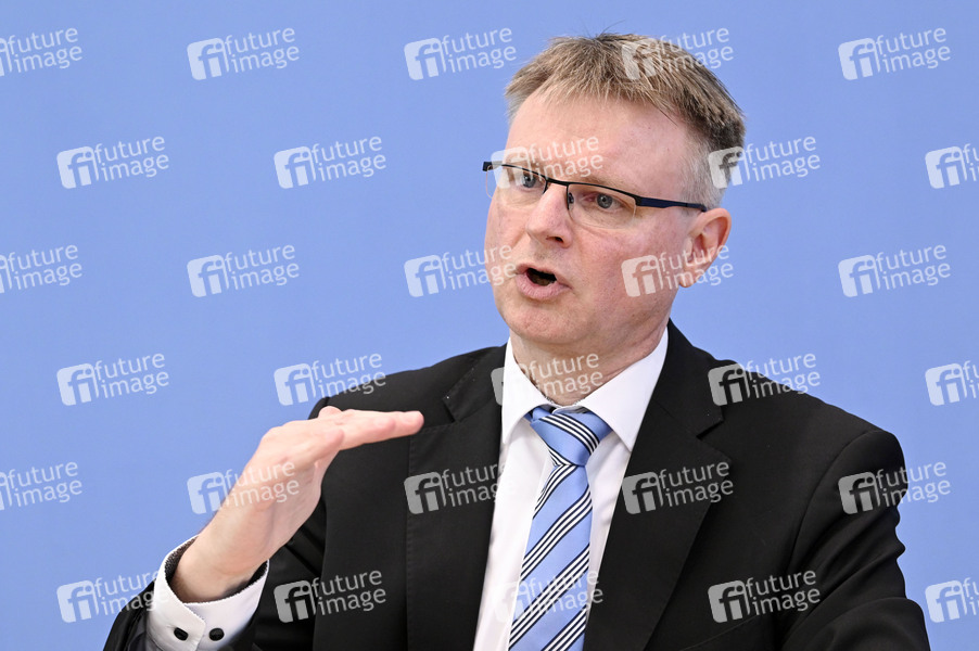 Stefan Kooths bei der Bundespressekonferenz Gemeinschaftsdiagnose der Wirtschaftsforschungsinstitute Frühjahr 2024 im Haus der Bundespressekonferenz. Berlin, 27.03.2024
