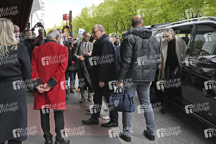 Fürst Albert II. von Monaco mit Fürstin Charlene bei ihrer Ankunft im Hotel Vier Jahreszeiten. Die Fürstenfamilie ist zur Eröffnung des Monaco-Abschnitts im Miniatur Wunderland nach Hamburg gekommen. Hamburg, 25.04.2024