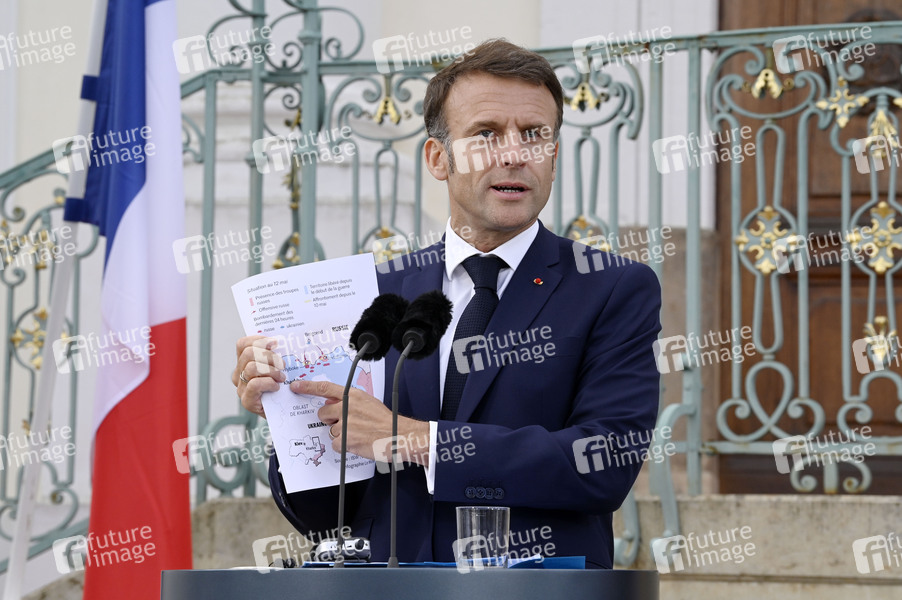 Emmanuel Macron beim Treffen des Deutsch-Französischen Ministerrats im Gästehaus der Bundesregierung Schloss Meseberg. Meseberg, 28.05.2024