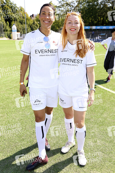 Annabelle Mandeng und Esther Roling beim Benefiz-Fußballspiel 'Kicken mit Herz' 2022 zu Gunsten des Herzzentrums des UKE im Stadium des SC Victoria. Hamburg, 04.09.2022