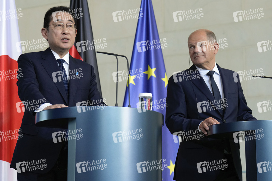 Fumio Kishida und Olaf Scholz beim Empfang des Premierministers von Japan mit militärischen Ehren und zu einem gemeinsamen Gespräch mit anschließendem Pressestatement im Bundeskanzleramt. Berlin, 12.07.2024