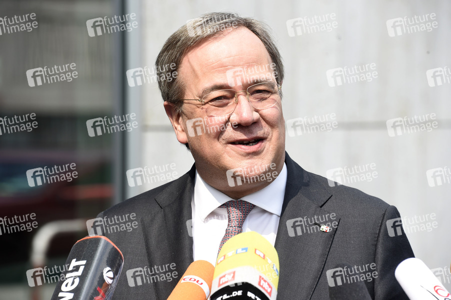 Armin Laschet bei einem Pressestatement zur Kanzlerkandidatur von Annalena Baerbock vor dem Konrad-Adenauer-Haus. Berlin, 19.04.2021
