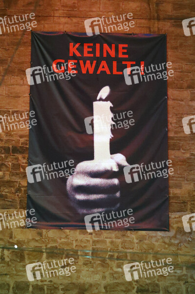 Banner am Roten Turm beim Solidaritätskonzert 'Halle zusammen' für die Opfer des Anschlags vom 9. Oktober auf dem Marktplatz. Halle an der Saale, 19.10.2019