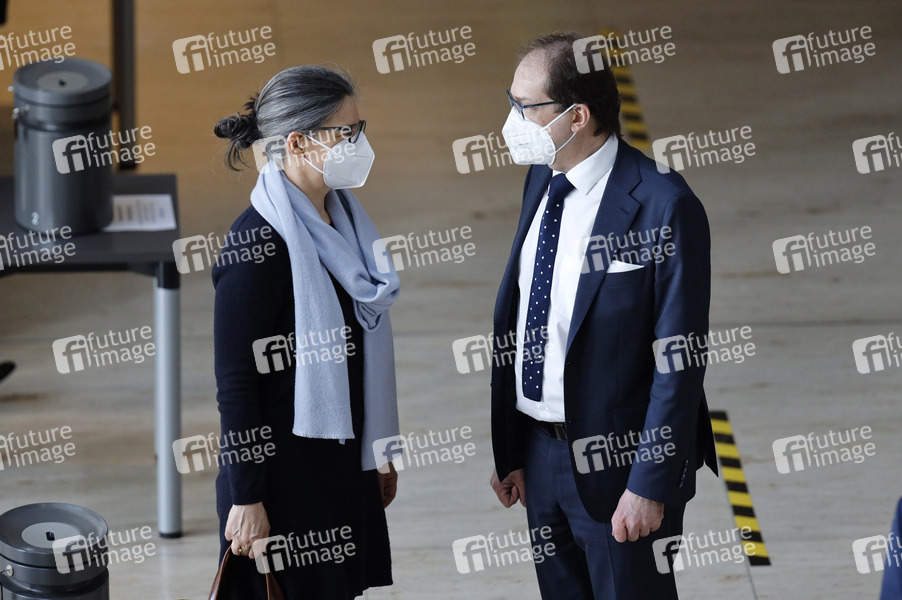 Nina Scheer und Alexander Dobrindt in der 218. Sitzung des Deutschen Bundestages im Reichstagsgebäude. Berlin, 25.03.2021
