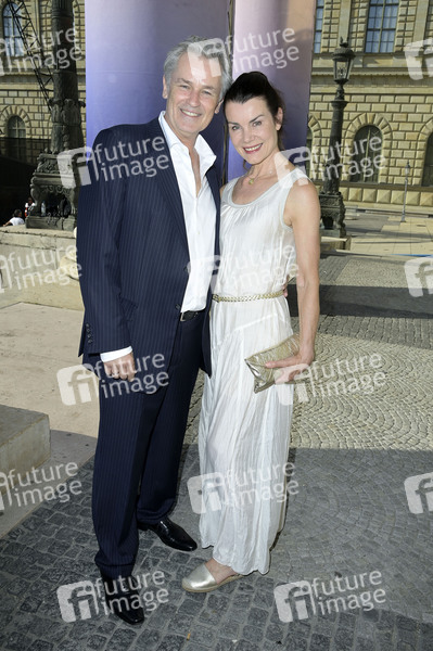 Timothy Peach mit Ehefrau Nicola Tiggeler beim Event Oper für alle 2024 im Rahmen der Münchner Opernfestspiele im Nationaltheater mit der Live-Opernübertragung von Giacomo Puccinis Tosca auf dem Max-Joseph-Platz. München, 27.07.2024