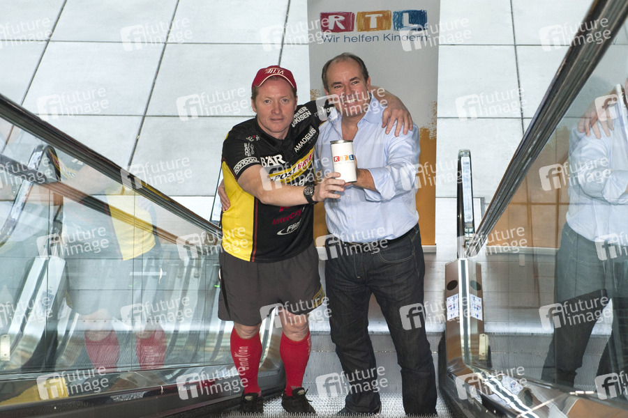 Pressetermin zum Guinness Weltrekord-Versuch. Joey Kelly will parallel zum RTL-Spendenmarathon eine herunterfahrende Rolltreppe 24 Stunden lang hochsteigen im RTL-Gebäude, Köln