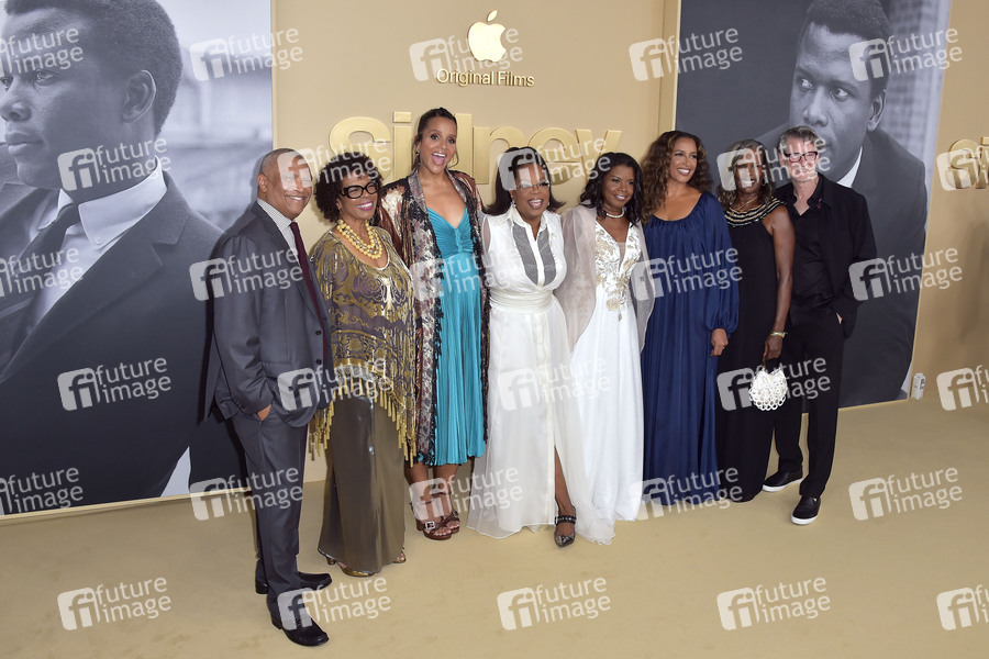 Reginald Hudlin, Beverly Poitier-Henderson, Sydney Tamiia Poitier, Oprah Winfrey, Sherri Poitier, Anika Poitier, Pamela Poitier und Derik Murray bei der Premiere der Apple TV+ Dokumentation 'Sidney' im Academy Museum of Motion Pictures. Los Angeles, 21.09.2022