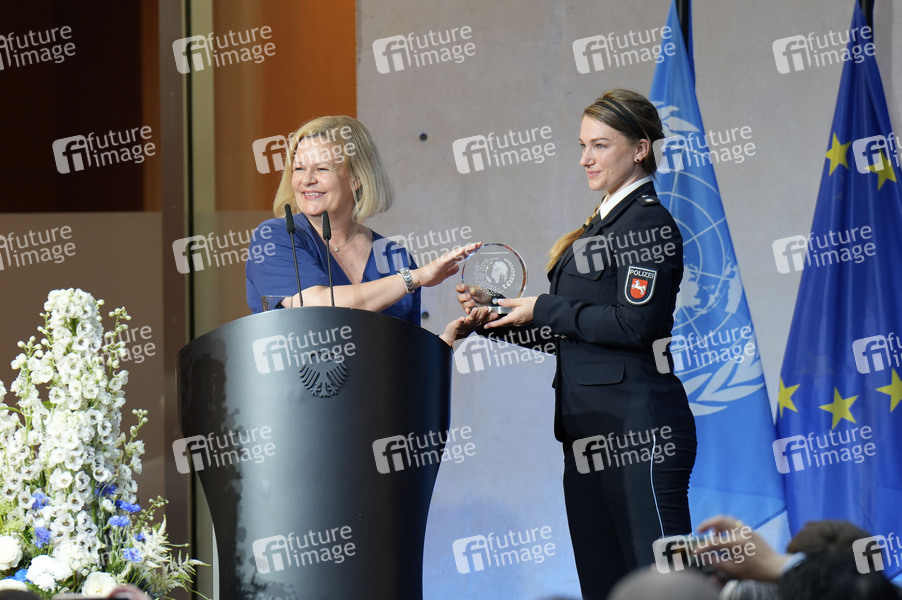 Nancy Faeser und Polizeioberkommissarin Lysanne Köhnke beim Tag des Peacekeeping 2024: Im Einsatz für Frieden, Sicherheit und Zuversicht im AXICA Veranstaltungszentrum am Brandenburger Tor. Berlin, 27.06.2024
