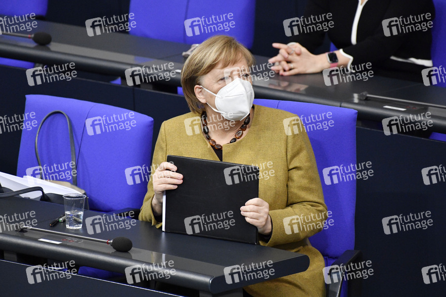 Angela Merkel bei der Regierungserklärung zur Bewältigung der COVID-19-Pandemie in der 209. Sitzung des Deutschen Bundestages im Reichstagsgebäude. Berlin, 11.02.2021