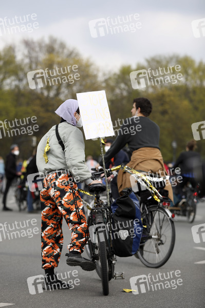 Fahrraddemo zum 1. Mai in Berlin. Nach Sternfahrt radelt der kapitalismuskritische Protest 'MyGruni' ins Villenviertel Grunewald. Berlin, 01.05.2021