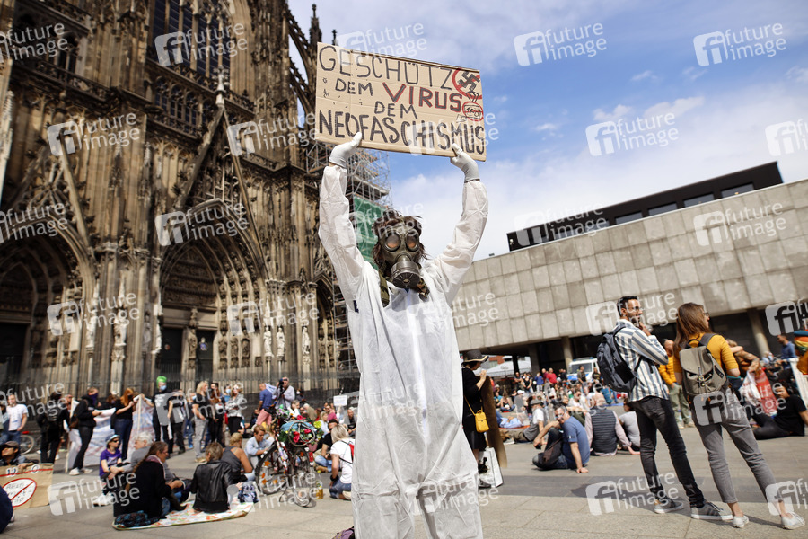 Demonstrationen des Bündnis Köln gegen Rechts und Gegner der Corona-Maßnahmen auf dem Roncalliplatz. Köln, 16.05.2020