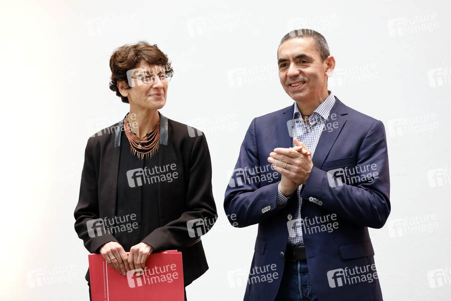 Özlem Türeci und Ugur Sahin, die Gründer des Biotechnologie-Unternehmens Biontech, bei der Verleihung der Ehrendoktorwürde der Medizinischen Fakultät der Uni Köln und der Eintragung ins Goldene Buch der Stadt Köln. Köln, 17.09.2021
