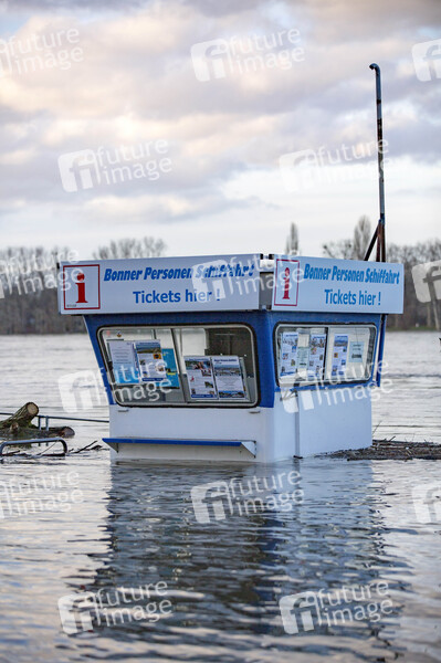 Das erste Jahreshochwasser am Rhein nahe des Pegelhöchstandes. Bonn, 04.02.2021