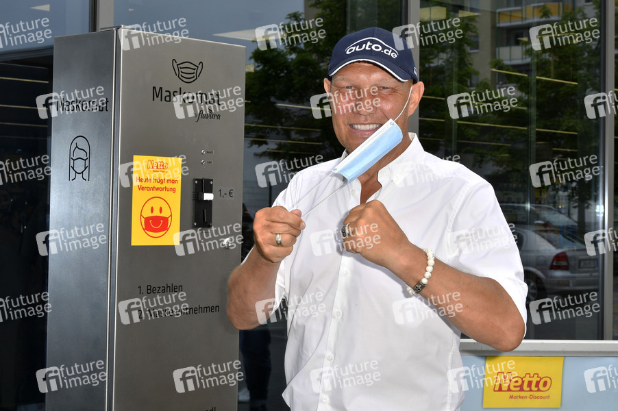 Axel Schulz bei der Präsentation des ersten Maskenautomaten Flavura Maskomat in Berlin in der Netto Marken-Discount Filiale Mark-Twain-Straße 4. Berlin, 11.06.2020