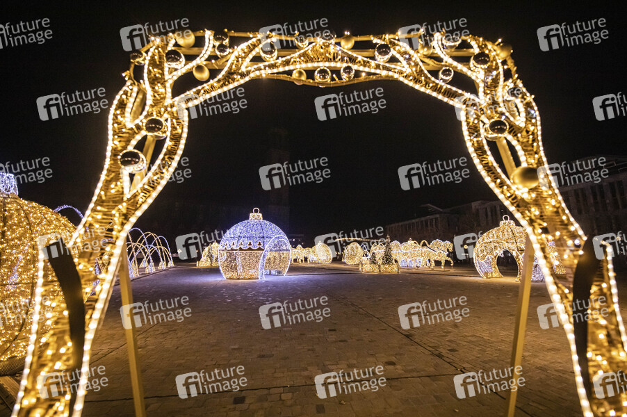 Lichterwelt auf dem Domplatz - Die Licherwelt Magdeburg mit der umfangreichste Weihnachts- und Winterbeleuchtung in Mitteldeutschland verteilt über die ganze Stadt. Magdeburg, 27.11.2022