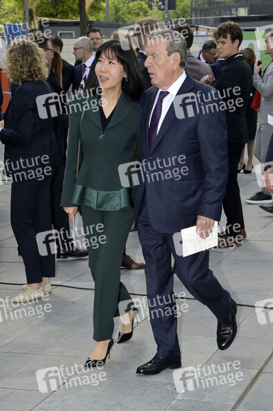 Gerhard Schröder mit Ehefrau So-yeon Schröder-Kim beim Staatsakt zu 75 Jahre Grundgesetz auf dem Forum zwischen Bundestag und Kanzleramt. Berlin, 23.05.2024