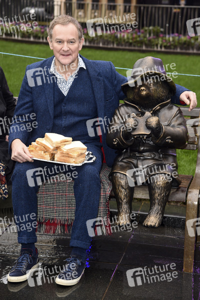 Hugh Bonneville mit Paddington Bär Statue