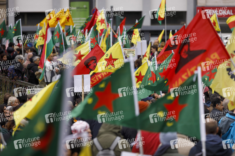 Kurdendemo, Kurden-Demonstration, Kurden-Demo, NavDem, Nav-Dem, YPG, Rojava, demokratisches Gesellschaftszentrum der Kurdinnen in Deutschland, PKK, Apo, kurdische Arbeiterpartei, Anti-Erdogan-Demo, Kurdistan, Demo, Demonstration, Demonstranten, Politik, Kurden, Kurde, kurdisch, Protest, Aktion, Demo gegen Erdogan, Fahne, Flaggen, Afrin, Syrien, Militäroffensive in Syrien, Türkei, Invasion, Einmarsch in Syrien, Versammlungsrecht, Nord-Syrien, Symbolbild, Symbolfoto
