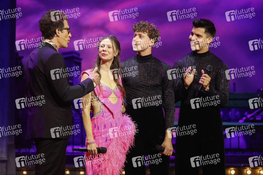 Daniel Hartwich, Ann-Kathrin Bendixen, Valentin Lusin und Alexandru Ionel in der zehnten Live-Show der 17. Staffel der RTL-Tanzshow 'Let's Dance' im Musical Dome. Köln, 10.05.2024
