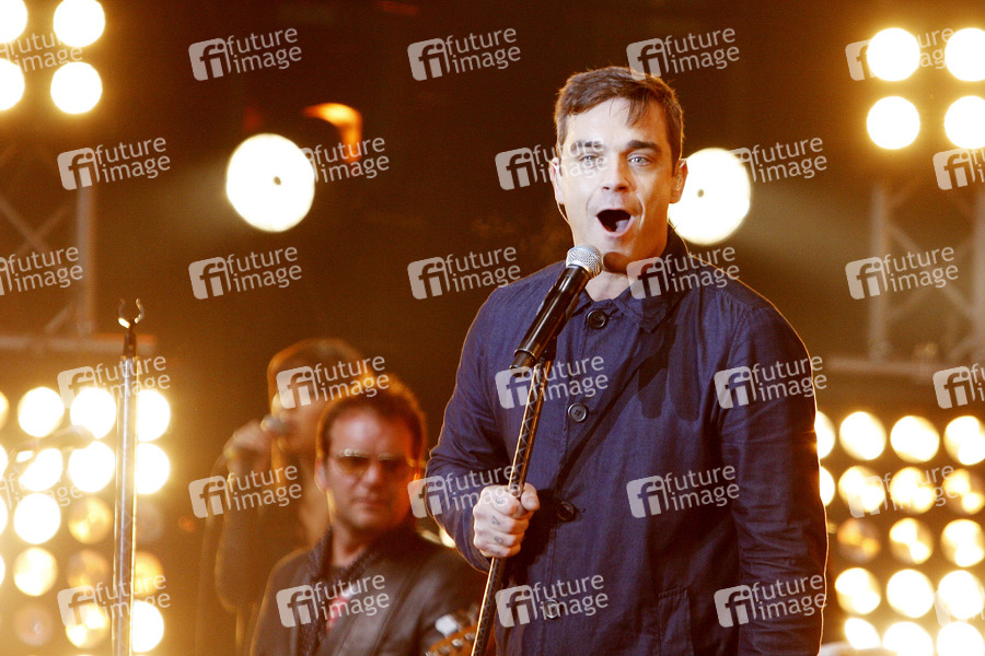 Robbie Williams Gratiskonzert zur Vorstellung seiner CD 'Reality Killed the Video Star' am Falkplatz vor der Max-Schmeling-Halle in Berlin