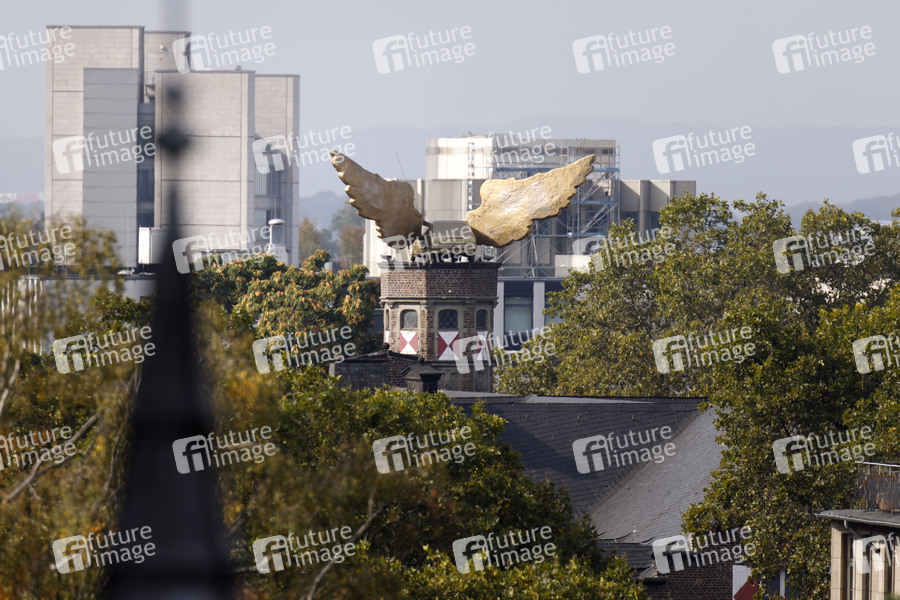 Das Flügelauto von HA Schult auf dem Dach des Zeughausturms am Kölnischen Stadtmuseum. Köln, 07.10.2021