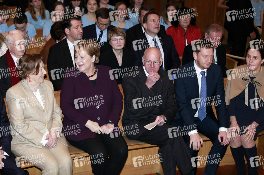 Ingrid Biedenkopf, Angela Merkel, Norbert Lammert, Michael Kretschmer und Annett Hofmann bei der Festveranstaltung '30 Jahre Friedliche Revolution und Neugründung des Freistaates Sachsen - 90 Jahre Kurt Biedenkopf' in der Frauenkirche. Dresden, 28.01.2020
