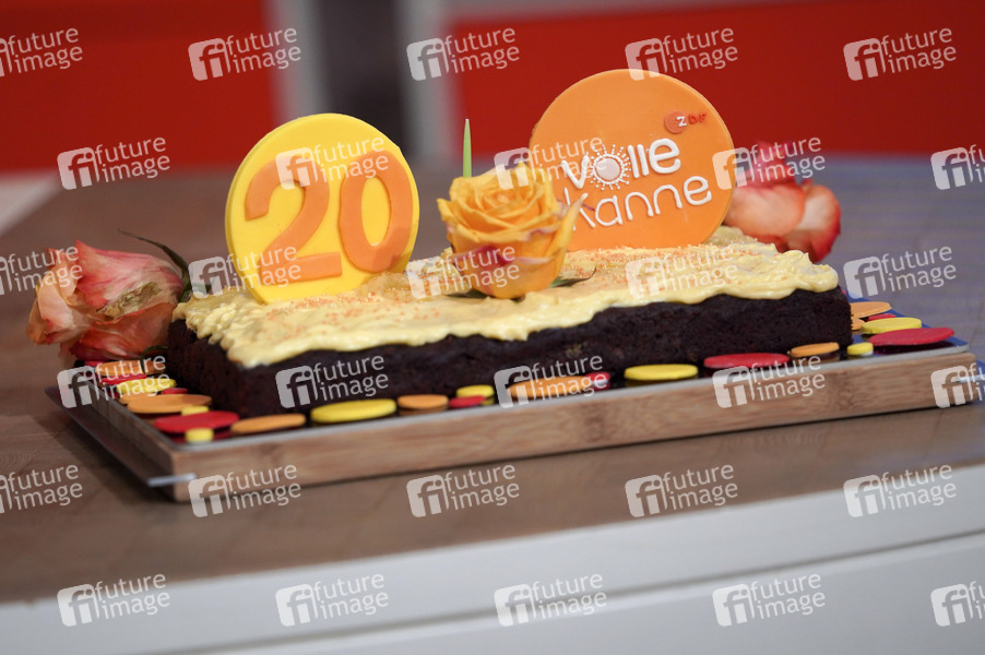 Geburtstagskuchen beim Pressetermin zum 20. Geburtstag des ZDF-Vormittagsmagazins 'Volle Kanne' im ZDF-Landesstudio Nordrhein-Westfalen. Düsseldorf, 26.08.2019