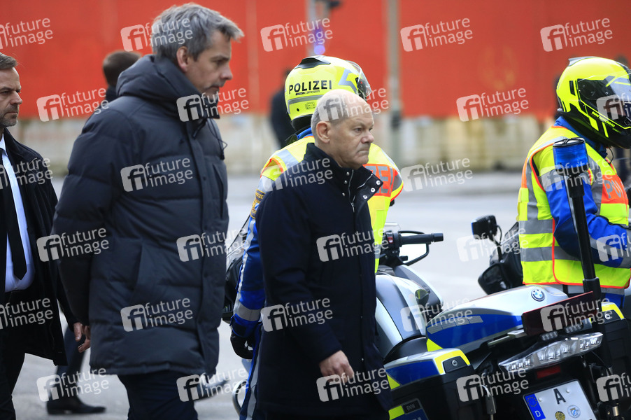 Olaf Scholz beim Pressestatement am Ort des mutmaßlichen Anschlags vom 13. Februar. München, 15.02.2025