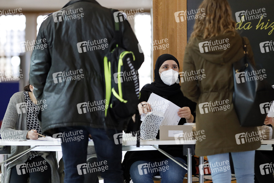 In der Ehrenfelder Ditib Moschee können sich Kölner am Wochenende gegen das Coronavirus impfen lassen. Zur Verfügung stehen Dosen des Impfstoffes von Astrazeneca sowie Johnson & Johnson. Köln, 08.05.2021