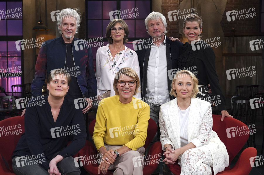 Martina Bergmann, Frank Schätzing, Maria Bachmann, Bettina Böttinger, Jürgen Becker, Anna Maria Mühe und Anke Engelke bei der Aufzeichnung der WDR-Talkshow 'Kölner Treff' im WDR Studio BS 2. Köln, 13.09.2019