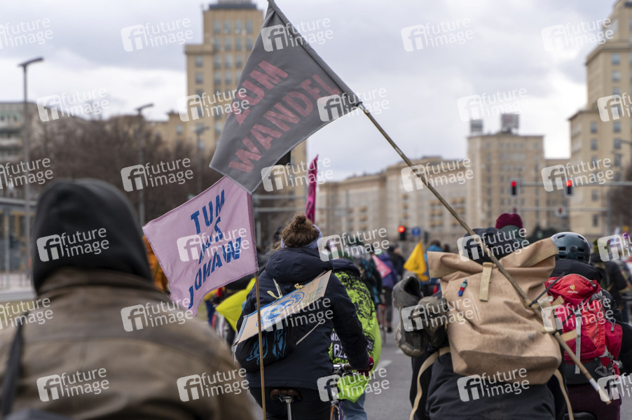 Am Freitag finden mehrere Demonstrationen zum globalen Klimastreik von Fridays for Future in Berlin statt. Auf dem Alexanderplatz startet eine antikapitalistische Fahrraddemo zum Potsdamer Platz. Berlin, 19.03.2021