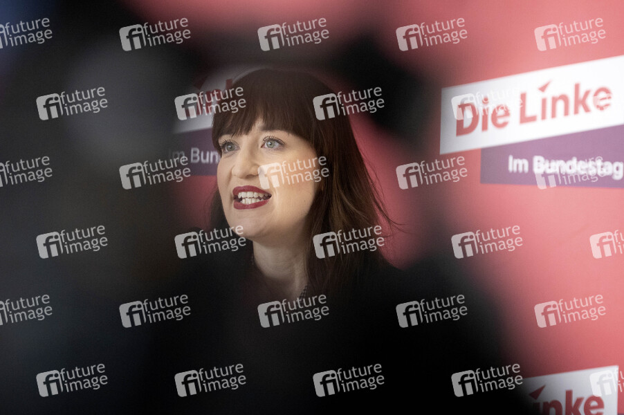 Politik, Statement, Pressekonferenz, PK, Reichstag, Deutscher Bundestag, Demokratie, Parlament, Parlamentsgebäude, Volksvertreter, MdB, Mitglied des Bundestages, Abgeordnete, Politikerin, Vorsitzende der Fraktion Die Linke