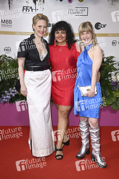 Wanda Perdelwitz, Sara Fazilat und Laura Fischer bei der 75. Verleihung des Deutschen Filmpreises 2025 im Theater am Potsdamer Platz. Berlin, 09.05.2025