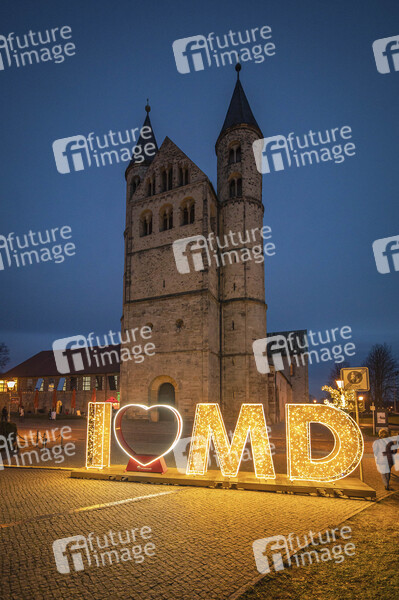 Lichterwelt vor dem Magdeburger Kloster Unser Lieben Frauen - Die Licherwelt Magdeburg mit der umfangreichste Weihnachts- und Winterbeleuchtung in Mitteldeutschland verteilt über die ganze Stadt. Magdeburg, 27.11.2022