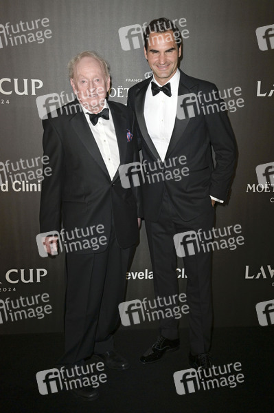 Rod Laver und Roger Federer bei der Eröffnung des Laver Cup 2024 im Westhafen Event- und Kongresszentrum. Berlin, 19.09.2024